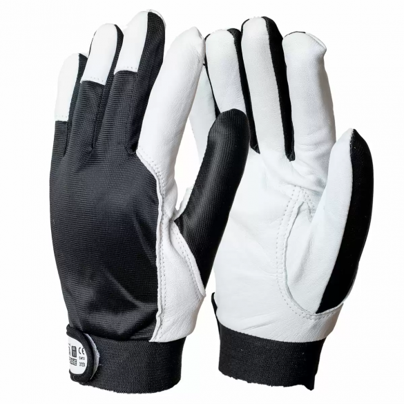 Guanto fiore di capretto e pelle grado A/B con rinforzo sul pollice e dorso in nylon elastico, chiusura elastica con velcro - Taglia 10/XL