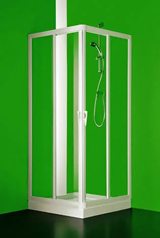 CABINA DOCCIA DUE LATI AD APERTURA ANGOLARE SERIE VELA 70/75*70/75 INGRESSO 42CM Caratteristiche Tecniche Profili in PVC. Apertura ad anta scorrevole su cuscinetti. Chiusura magnetica. Riducibile tagliando i binari di scorrimento. Reversibile. Estensibilità per la regolazione al piano d'appoggio. Sistemi di fissaggio in acciaio inossidabile. Accessori in ABS.