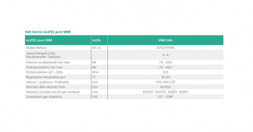 HS X CF 24CALDAIA MURALE TRADIZIONALE DA 24 KW METANO TIRAGGIO NATURALELa caldaia tradizionale Ariston HS 24 CF è la caldaia murale compatta convenzionale Low NOx di casa ARISTON.La nuova caldaia HS X CF è la proposta alla normativa Europea ErP, che ha concesso una deroga per quelle soluzioni abitative dotate di canna collettiva ramificata, per le quali è necessaria una caldaia tradizionale a camera aperta.È possibile quindi l’utilizzo di caldaie convenzionali a camera aperta esclusivamente in sostituzione di vecchi prodotti installati su canne collettive ramificate laddove non sia presente un’alternativa.La nuova gamma serie X è in linea con i requisiti imposti sui limiti di NOx entrati in vigore il 26 Settembre 2018.La caldaia HS X CF è una caldaia murale, da interno, per Riscaldamento e acqua calda alimentata a Metano.Grazie ai suoi 24 kW di potenza, è in grado di produrre 14.2 l/m di acqua calda in grado di soddisfare le abitudini quotidiane residenziali.Le sue dimensioni ridotte permettono una installazione facile e veloce e grazie ai suoi 40 cm lunghezza, 31.5 cm larghezza e 74.5 cm in altezza è in grado di adattarsi in ogni angolo della casa per un ingombro ridotto per l'installazione.Grazie al suo circolatore modulante per l'ottimizzazione dei consumi e la massimizzazione delle prestazioni, garantisce un risparmio notevole in termini annuali.Prodotto interamente in Italia, la nuova linea CF X rappresenta l'espressione del MADE IN ITALY di altà qualità di casa ARISTON.Caratteristiche Display multifunzione digitale Circolatore alta efficienza a modulazione continua Predisposizione termoregolazione on-off Predisposizione sistemi solari circolazione naturale Sistema di autodiagnosi mediante codice Gestione zone mono-temperatura Scambiatore primario alettato in rame Tecnologia a doppio scambiatore Pressostato di minima integrato Filtri ingresso acqua fredda e ritorno riscaldamento Basse emissioni di NOx < 56 mg/kWh Dati tecniciCOMBUSTIONE Portata termica nominale max/min (riscaldamento) PCI: kW 25,8 / 11,0 Portata termica nominale max/min (sanitario) PCI: kW 27/11,0 Potenza termica utile max/min (riscaldamento): kW 23,2 / 9,8 Potenza termica utile max/min (sanitario): kW 24,3 / 9,9 RENDIMENTI Rendimento alla portata termica nominale PCI: % 90,1 Rendimento al 30% della portata nominale PCI: % 89,9 PRESTAZIONI Temperatura max/min riscaldamento: °C 82 / 35 Temperatura max/min sanitario: °C 60/36 Portata specifica in sanitario (10 min. con ΔT=30°C): litri/min 11,8 Quantità di acqua calda (ΔT=25°C): litri/min 14,2 Quantità di acqua calda (ΔT=35°C): litri/min 10,1 DATI ELETTRICI Tensione/frequenza di alimentazione: V/Hz 230 / 50 Grado di protezione impianto elettrico: IP X4D Temperatura ambiente minima di utilizzo: °C 5 Classe energetica: C Classe energetica in sanitario: B Profilo di prelievo: XL