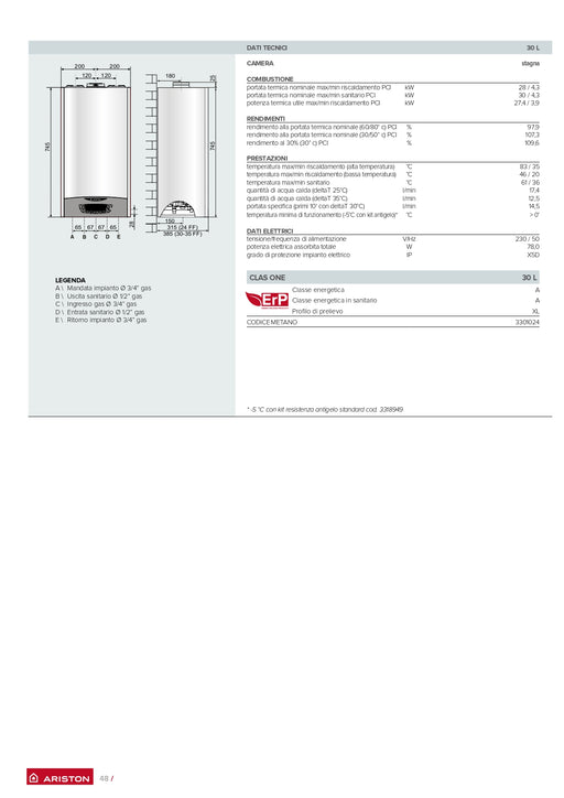 ARISTON - Caldaia murale a condensazione 30 Kw con wifi integrato e con funzione auto - Serie: Clas one L Wifi