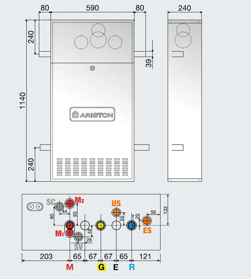 Ariston - Telaio incasso per caldaia, art. 3318397Unità da incasso in lamiera universale per tutta la gammaFondo e pareti pretranciate per collegamenti idraulici e fumisteria. Assenza di svergolamento e infiltrazioni.Contiene dima di installazioneDimensioni (A×L×P): 1140×590×240 mm