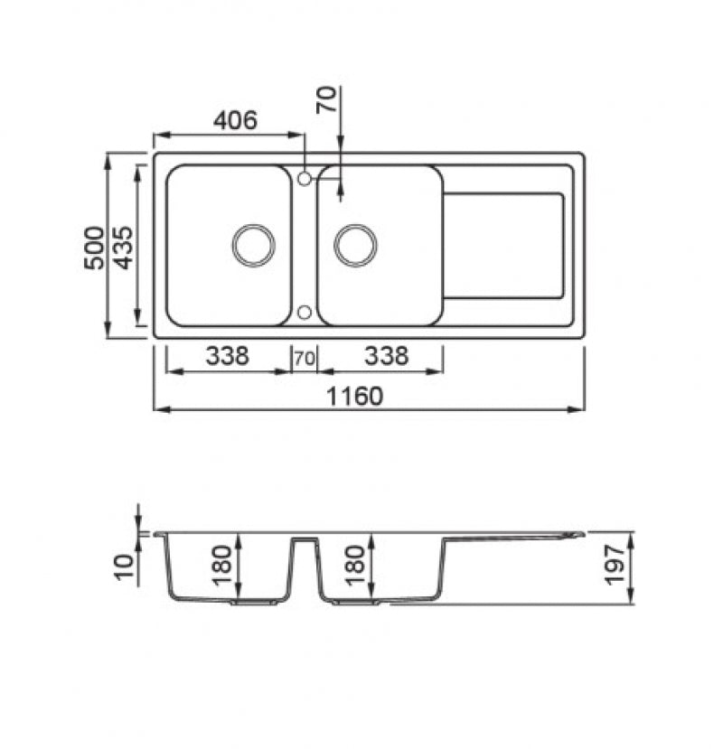 Elleci - Lavello Da Incasso reversibile In Composito Granitek Con Due Vasche + Appoggio - Misura: 116x50 cm - Colore: Granito avena