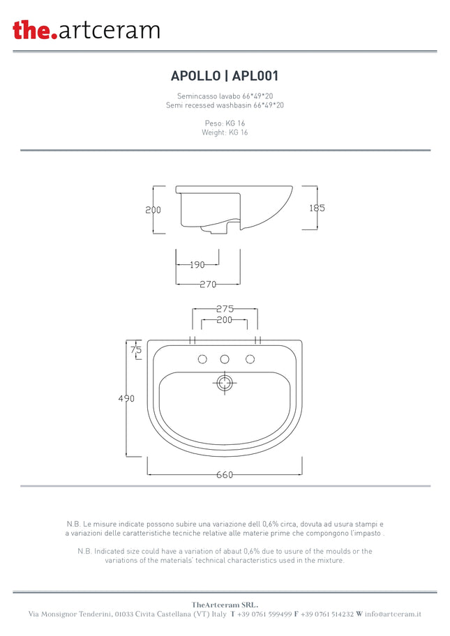 CIVITA CROMO SRL Lavabo Da Incasso 56*43 Porcellana