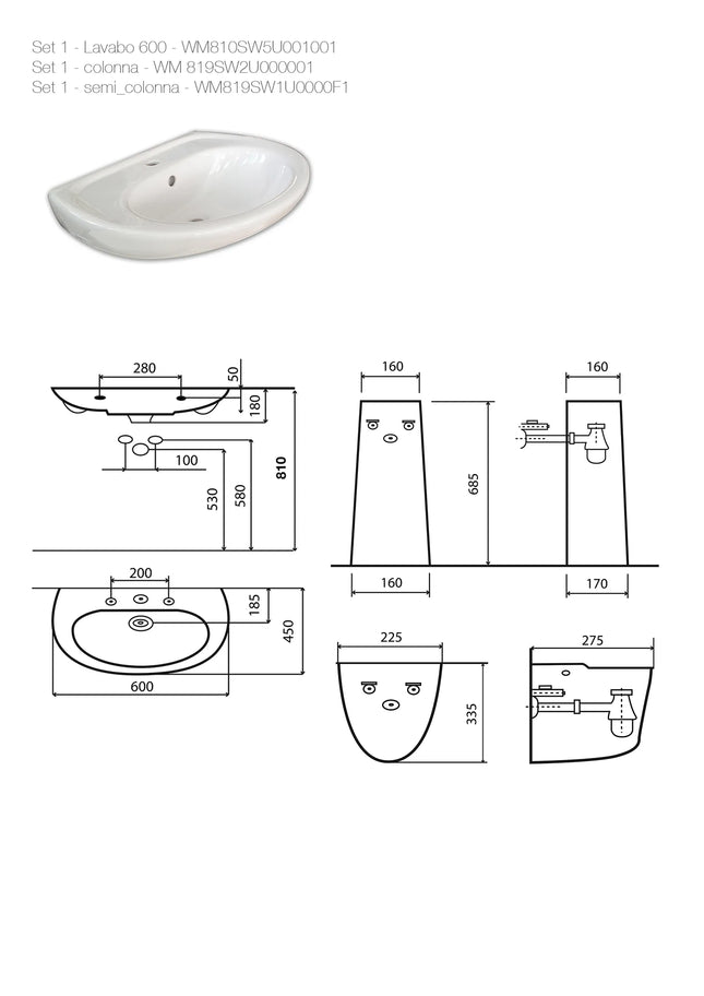 GEBERIT Geberit/Pozzi-Ginori - Semicolonna per lavabo in ceramica - Serie: Colibrì