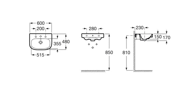 Roca - Lavabo in ceramica 63x51 cm - Colore: Bianco - Serie: Christina