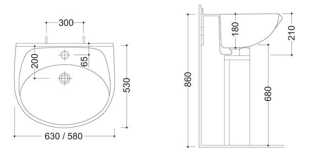 Azzurra - lavabo porcellana bianco 65 cm - serie: diana (senza colonna)