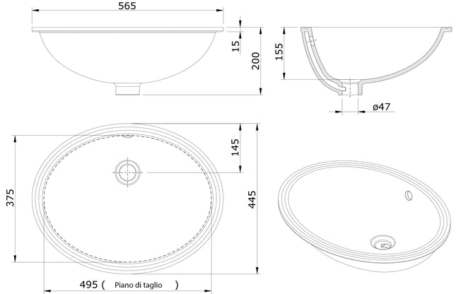 SANINDUSA Lavabo Da Incasso Sottopiano 58X42 Porcellana