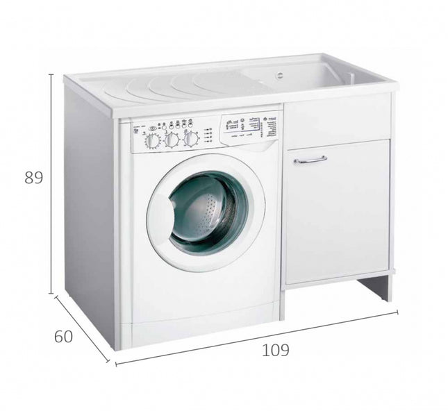 Lavatoio In Vetroresina Con Mobile 1 Anta In Pvc Coprilavatrice 109×60×89 (L×P×H) CM Lato Sinistro Bianco