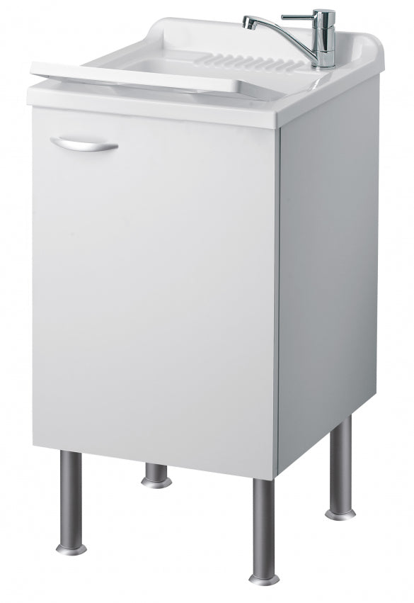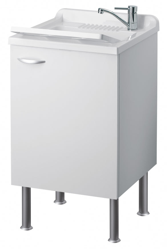 ELLE EMME CI - Lavatoio In Vetroresina Con Mobile In Legno 1 Anta In Bilaminato 45×50×85 Colore: Bianco (L×P×H) CM