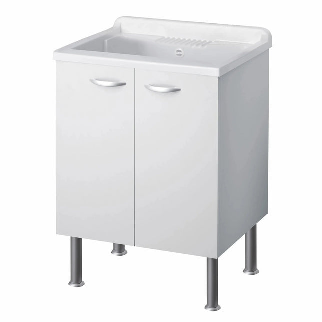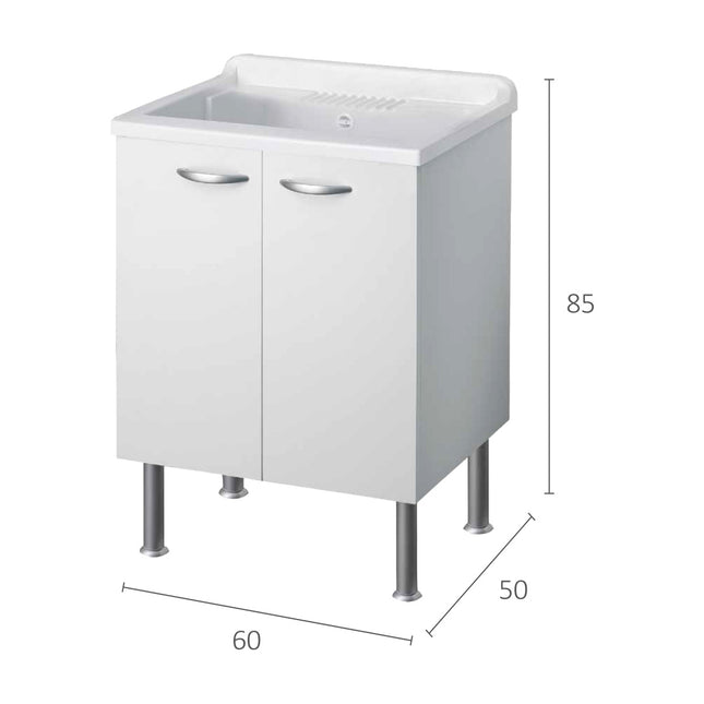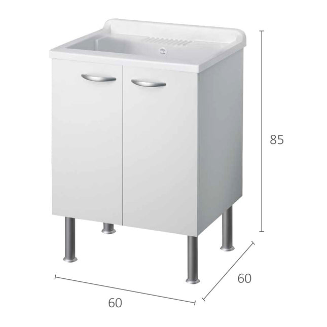 Lavatoio In Resina Con Mobile 2 Ante In Pvc 60x60x85 CM (LxPxH) BIANCO