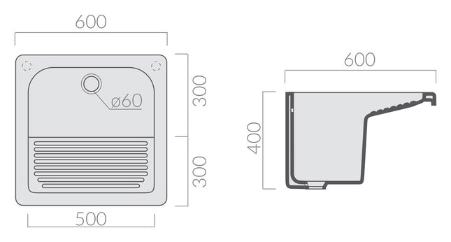 Lavatoio con sponda 60×60 CM (L×P) BIANCO cm in ceramica