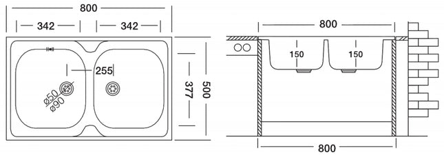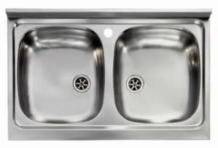 Lavello cucina in acciaio inox da appoggio con bordino 80 cm 2 vascheCaratteristiche Larghezza: 80 cm; Profondità: 50 cm; Profondità vasche: 15 cm