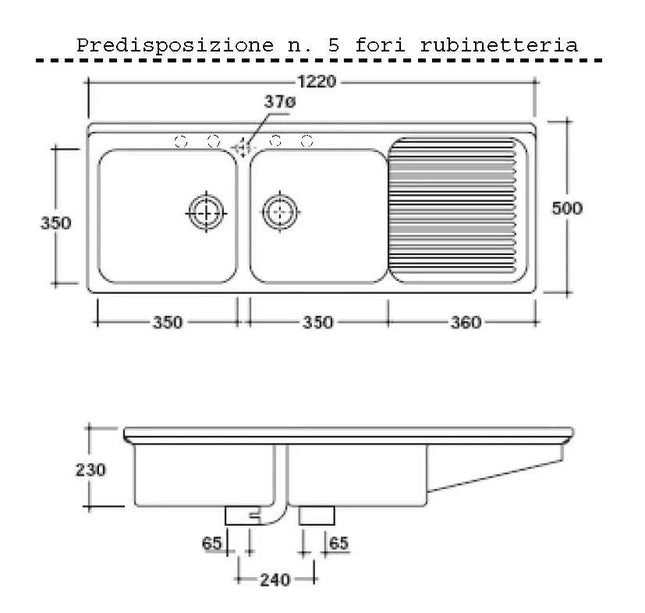 ELLECI Lavello cucina in acciaio inox vasca tonda Ø43