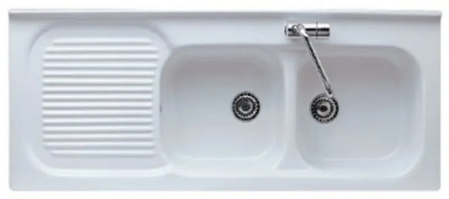 Lavello cucina in ceramica 120x50 cm con vasche a sinistra e gocciolatoio a destra