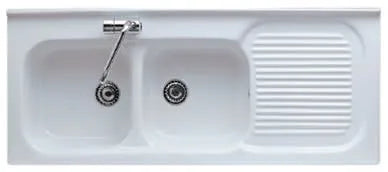 Lavello cucina in ceramica 120x50 cm con vasche a destra e gocciolatoio a sinistra