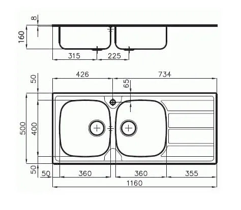 Foster - Lavello S1000 1812 561CaratteristicheGANCI SCORREVOLI - Esclusivo sistema di installazione Foster che permette ai ganci di fissaggio di scorrere lungo tutto il perimetro del lavello. Permette una installazione agevole potendo posizionare i ganci nei punti più accessibili.PILETTA 3,5" BASKET - Lo scarico è dotato di piletta grande 3,5”, con il pratico tappo a cestello che impedisce il defluire nello scarico di parti solide. La piletta 3,5” permette l’utilizzo del dissipatore Foster, compatibile con tutti i modelli.PIÙ VALORE - Foster utilizza spessori di acciaio superiori a quelli mediamente usati dagli altri produttori. È così, grazie anche alla lunga esperienza, che sappiamo realizzare lavelli di qualità superiore e con una migliore resistenza all'invecchiamento.Dettagli Bordo Installazione: Standard (Bordo 8 mm) Dimensioni: 1160x500 mm Dotazioni standard: Ganci di fissaggio, guarnizione, piletta, troppo-pieno e sifone, Imballo in scatola Fori Mixer: 1 foro di serie Foro incasso: 1140x480 mm Gocciolatoio: Si Larghezza:116 cm Materiale/Finitura: Acciaio inox AISI 304 - finitura lucida Misura vasca: 360x400mm Numero vasche: 2 vasche Piletta: 3,5"