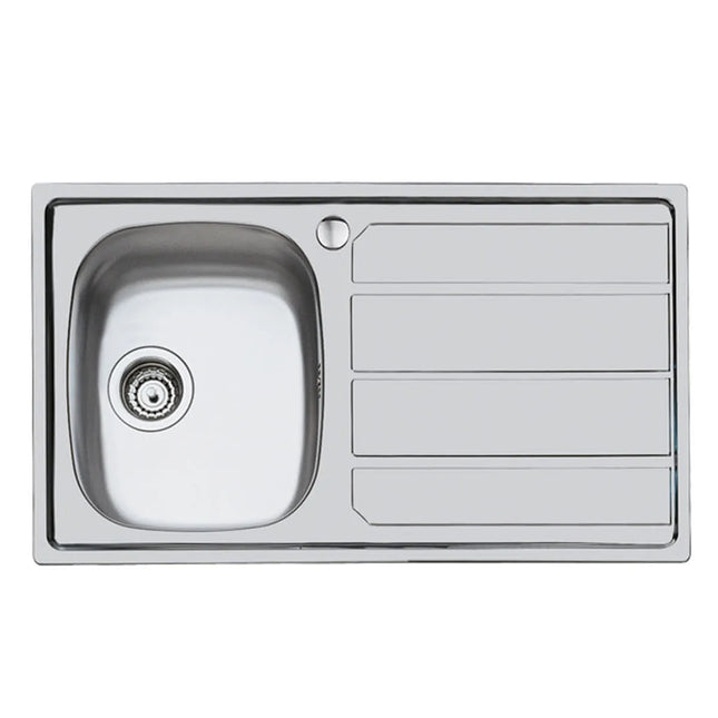 Lavello cucina in acciaio inox ad appoggio da 90 cm con bordino posteriore 1 vasca a sinistra con gocciolatoio a destra