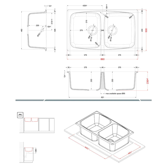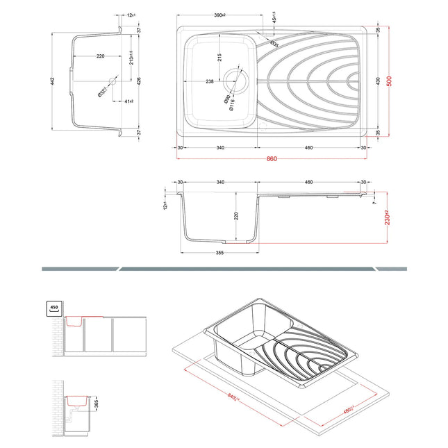 Lavello cucina reversibile da incasso Master 450, 860×500 mm, in Granitek® Matt NeroUna collezione di lavelli dal design country, perfetto per chi preferisce un ambiente caldo e classico ma con una forte personalità. Ogni modello è combinabile con numerosi accessori e molteplici colorazioni.CARATTERISTICHE PRODOTTO Descrizione: Lavello 2 vasche Materiali: Granitek Matt Colore: G40 Nero Base (mm): 900 (Sopratop) Installazione: Sopratop Dimensioni (mm): 860 x 500 Dimensioni incasso (mm): 840 x 480 (Sopratop) Numero vasche: 2 Profondità vasca (mm): 220 Reversibilità: Sì Gocciolatoio: No Corredo: Sifone salvaspazio e Pilette e ganci.
