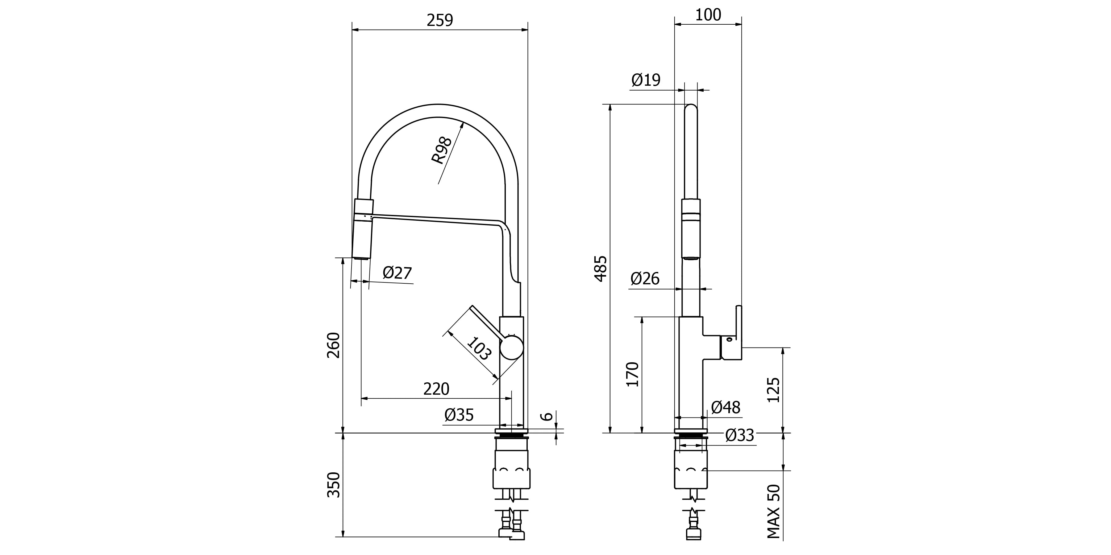 Teorema - Miscelatore Lavello Con Tubo Siliconico Nero E Doccia Orientabile