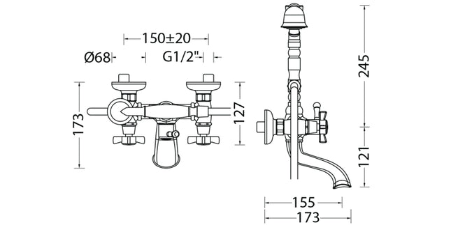 TEOREMA Teorema - Miscelatore Vasca completo di doccetta flessibile e applique serie Pillar