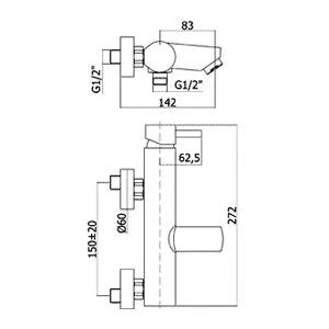 Teorema - Miscelatore Vasca completo di doccetta flessibile e applique serie Pillar
