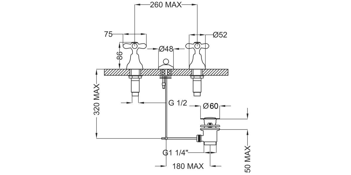 Teorema - Batteria Bidet Tre Fori Senza Canna - Serie: Daisy - Colore: Cromato - Articolo: 70408110X4