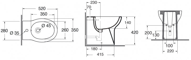 Azzurra - Bidet Filo Parete bianco Serie Click (miscelatore escluso)