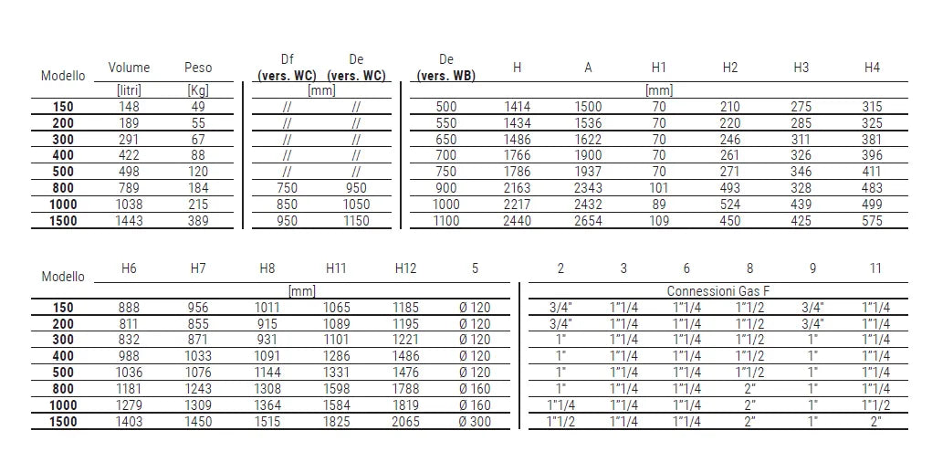 Scarico attraverso manicotto sul fondo. Modelli > lt 500 tubazione di scarico già montata.