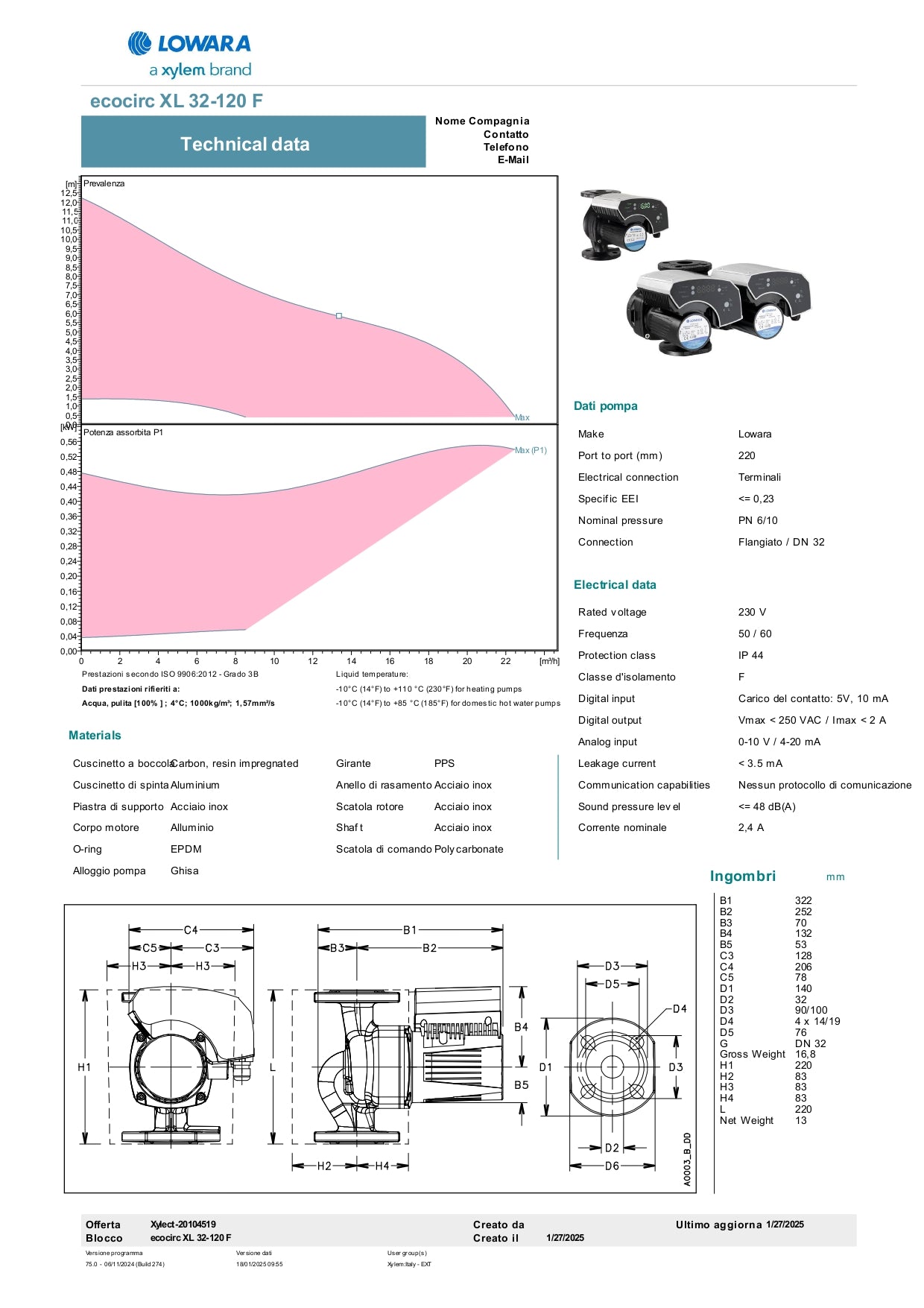 Lowara - Circolatore inverter Ecocirc XL 32-120 Flangiato A Magneti Permanenti Ad Alta Efficienza