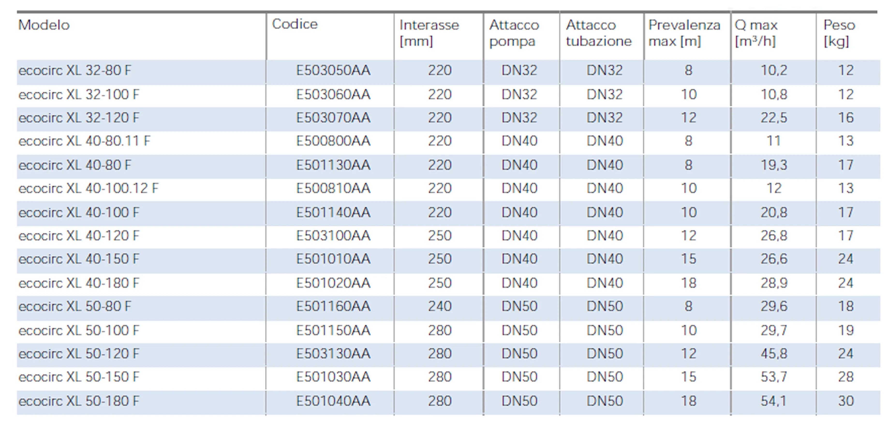 XL32-120F 12 metri prevalenza DN32 Interasse 220 mm Per saperne di più