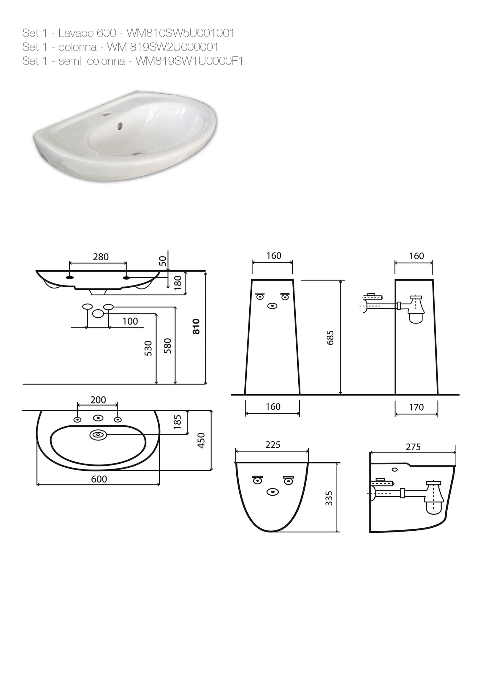 Roca - Semicolonna Sospesa in ceramica Bianco - Serie: Fayans Set 1