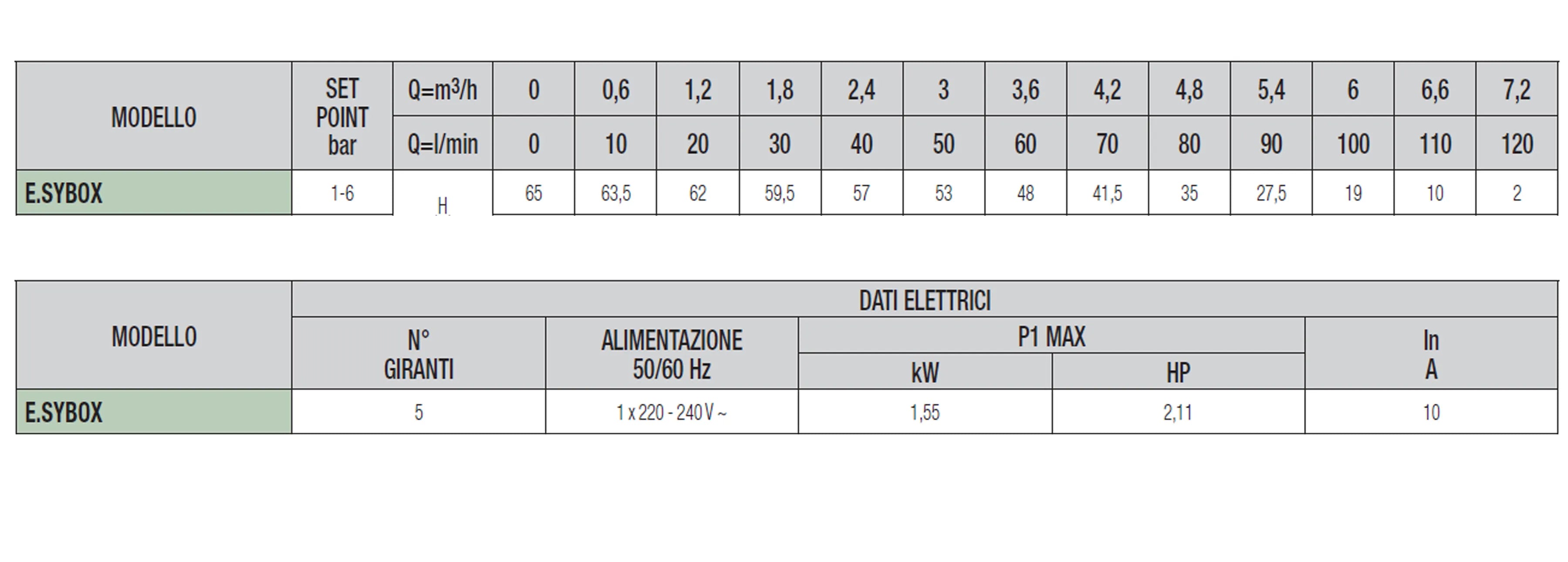 La pressione costante può essere impostata da 1 a 6 bar per E.SYBOX.