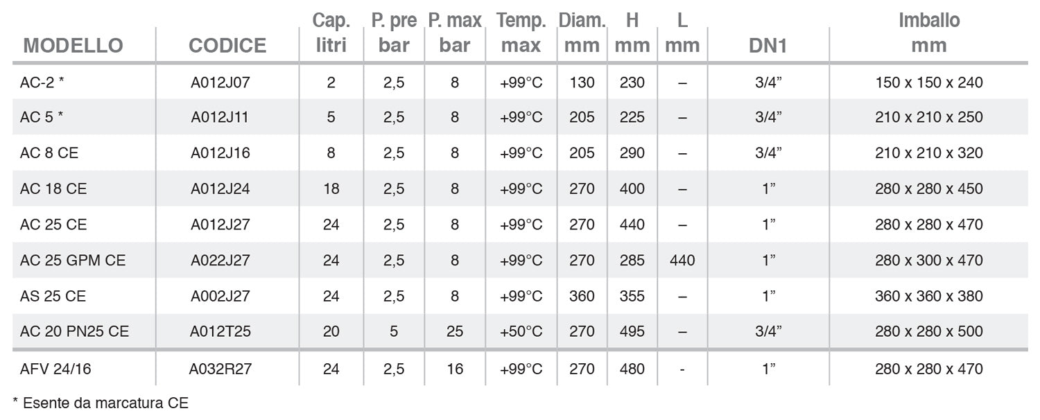 Tutti i modelli sono forniti di serie con membrana in EPDM; ciò li rende utilizzabili anche come vaso di espansione sanitario fino ad una temperatura massima di progetto pari a +99°C.