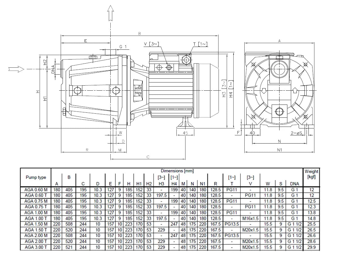 Le elettropompe AGA - AGC sono elettropompe sono elettropompe in ghisa autoadescanti dotate di gruppo Venturi (eiettore e diffusore) in PPE + PS rinforzato con fibre di vetro.