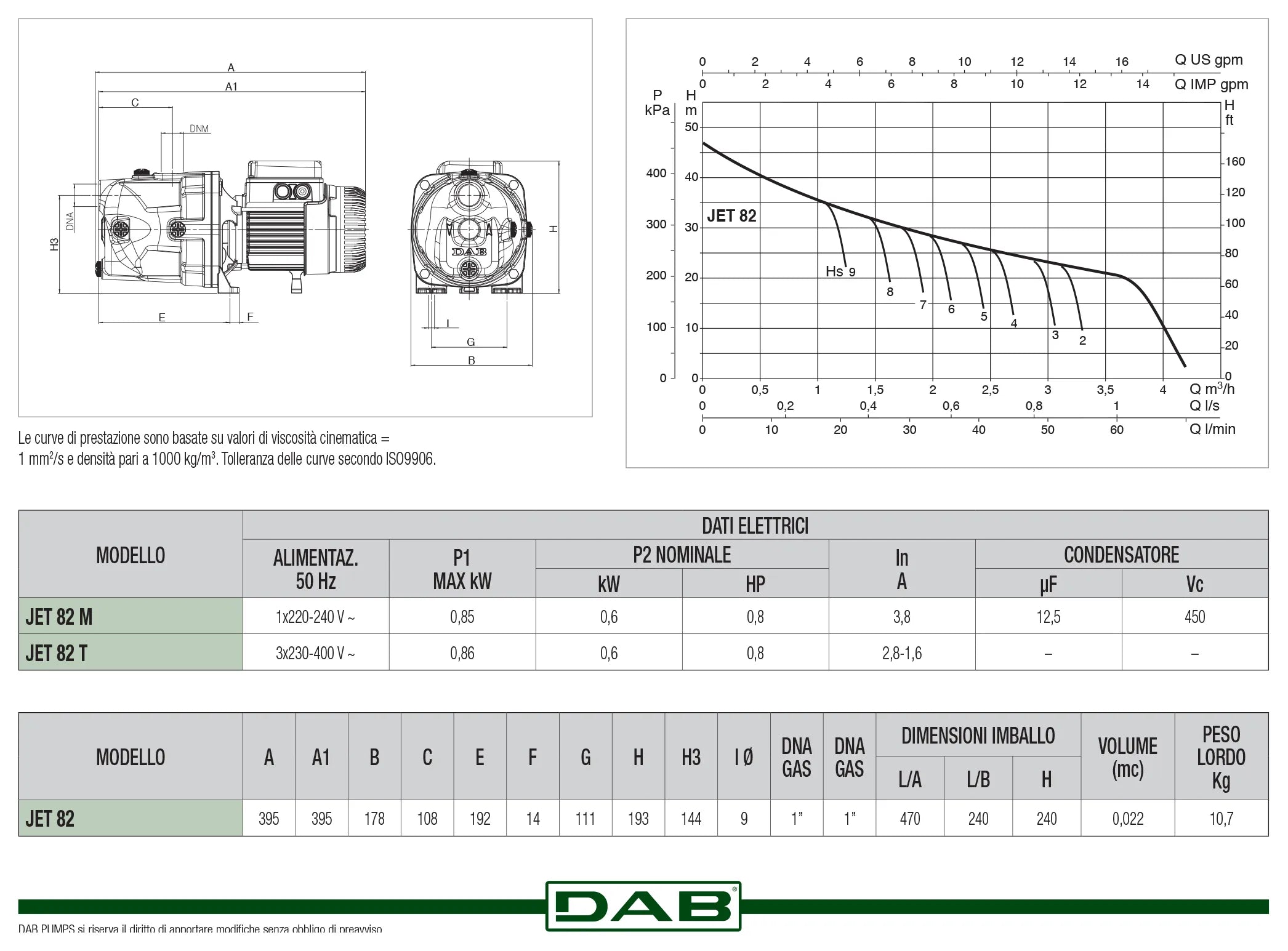 da 0,4 a 10,5 m3/h con prevalenza fino a 62 metri.