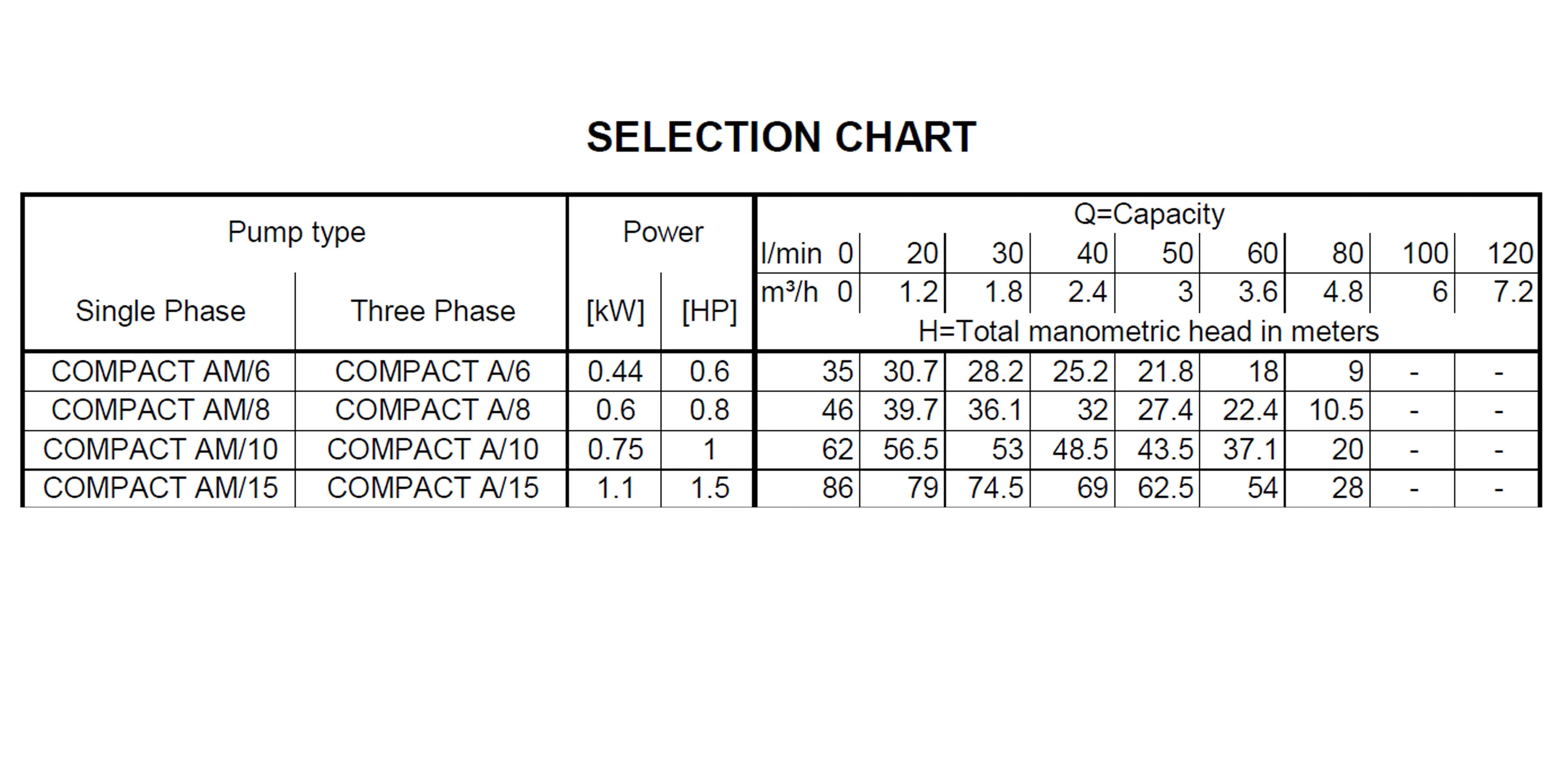 • Portata da 1,2 a 7,2 m3/h