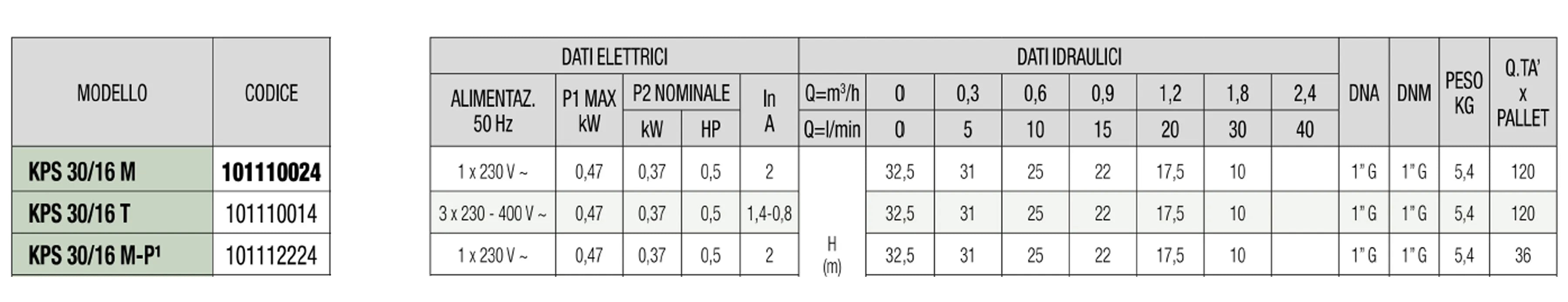Massima pressione di esercizio: 10 bar (6 bar per KPS-KPF 30/16).