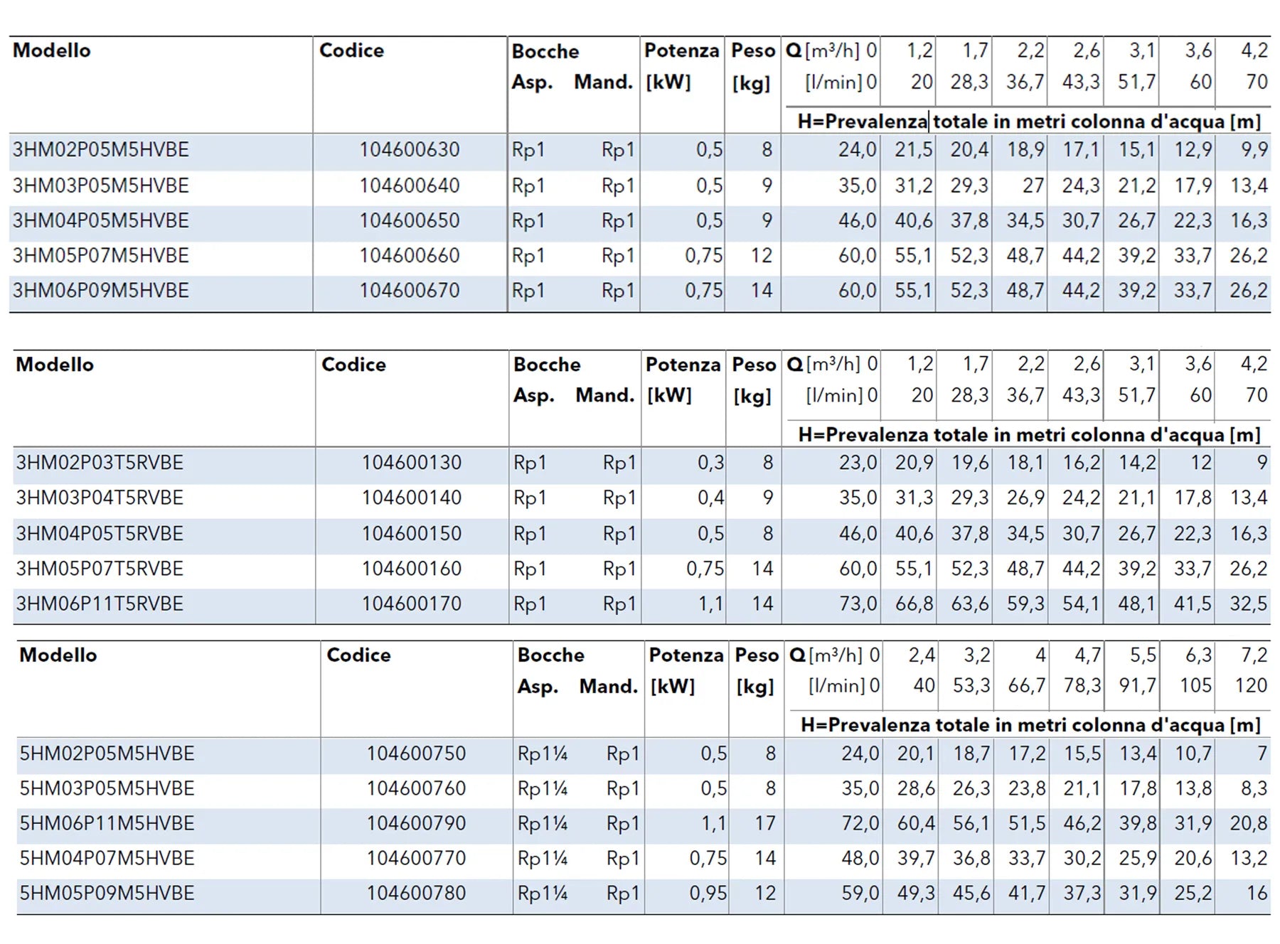 • Potenza: da 0,30 kW fino a 5,50 kW