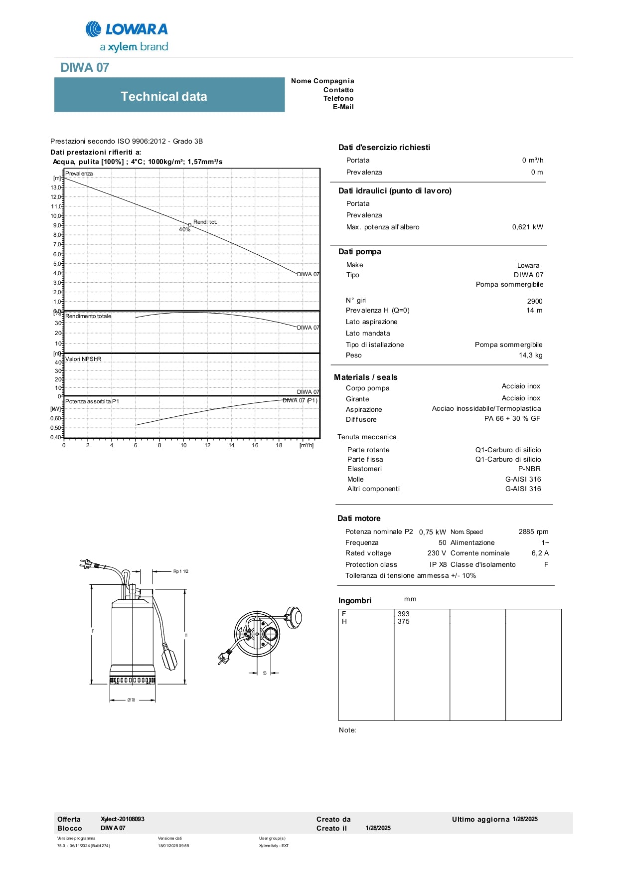 DIWA Specifiche Portata: fino a 25 m³/h Prevalenza: fino a 21 m Alimentazione: mono e tri-fase 50 e 60 Hz... Per saperne di più