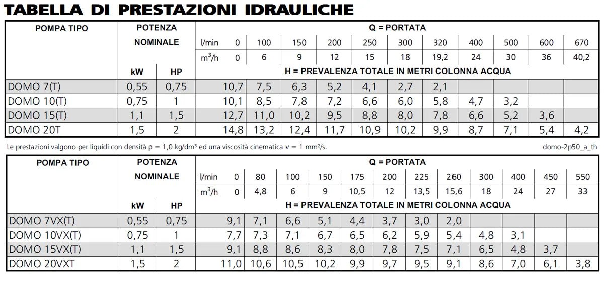 Le elettropompe sommergibili per drenaggio di acque sporche della serie DOMO sono disponibili sia con girante bicanale sia con girante vortex (DOMO VX).Possibilità di pompaggio di solidi in sospensione fino a 50 mm (35 mm per DOMO 7 e DOMO 7VX). Quattro versioni base con potenze nominali da 0,55 a 1,5 kW. Sistema di tenuta DRIVELUB SEAL SYSTEM.
