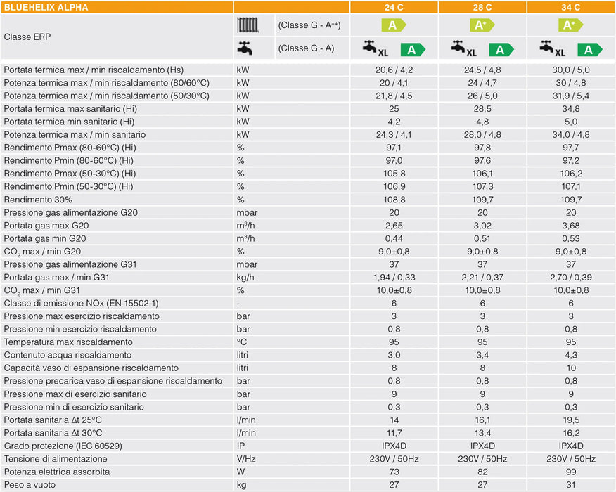 BLUEHELIX ALPHA C 34 kWCALDAIE MURALI A CONDENSAZIONE PRODUZIONE SANITARIA ISTANTANEAPUNTI DI FORZACaldaia con scambiatore primario in acciaio inox mono circuito privo di... Per saperne di più
