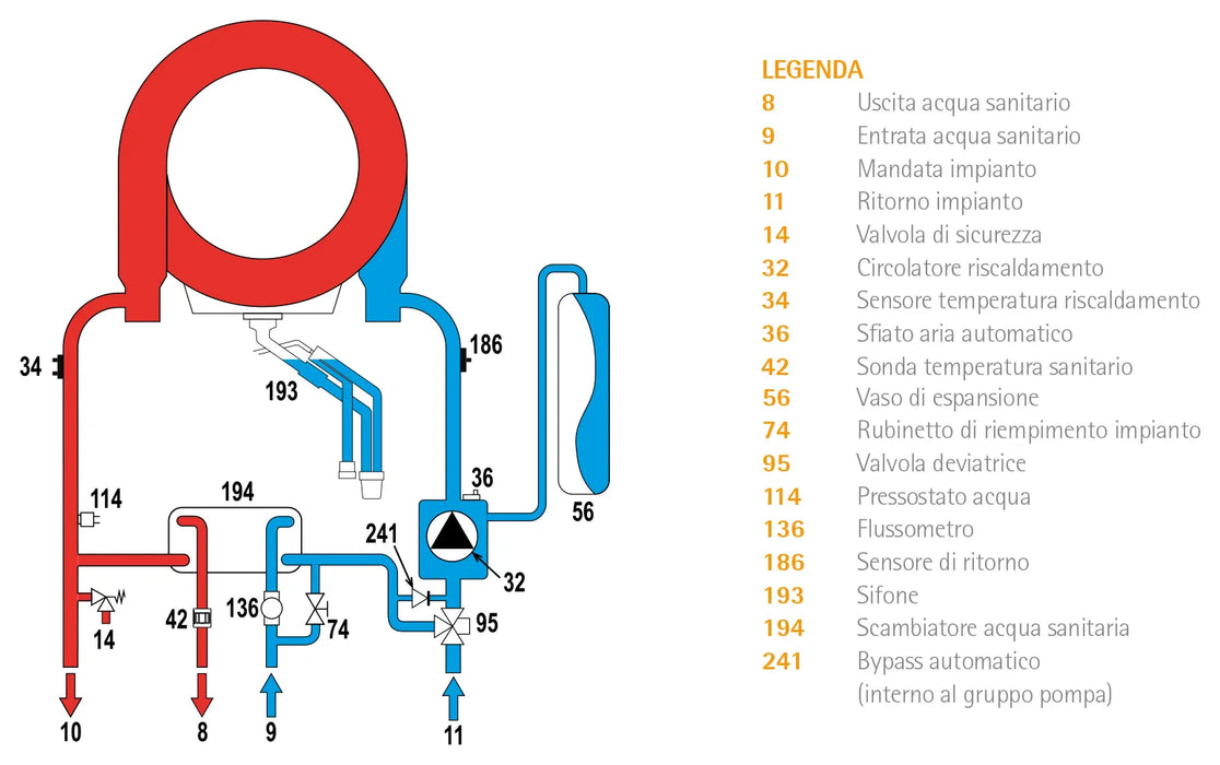 Caldaia con scambiatore primario in acciaio inox mono circuito privo di giunzioni e/o saldature, mantiene un’alta efficienza anche su vecchi impianti.