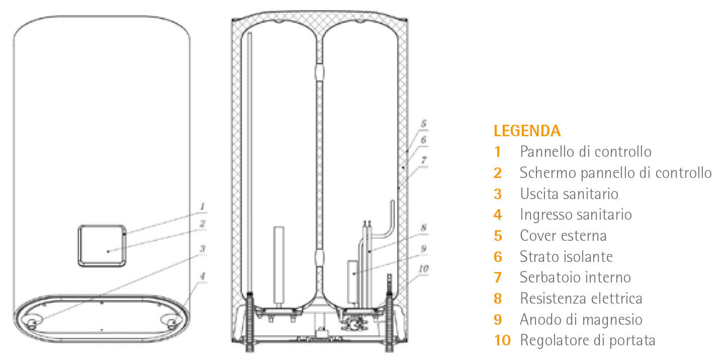 - Resistenza elettrica e serbatoio interno di tipo BLUE FOREVER, ultra-performanti e caratterizzati da uno speciale trattamento superficiale che riduce quasi del tutto le incrostazioni per un funzionamento duraturo ed efficiente.