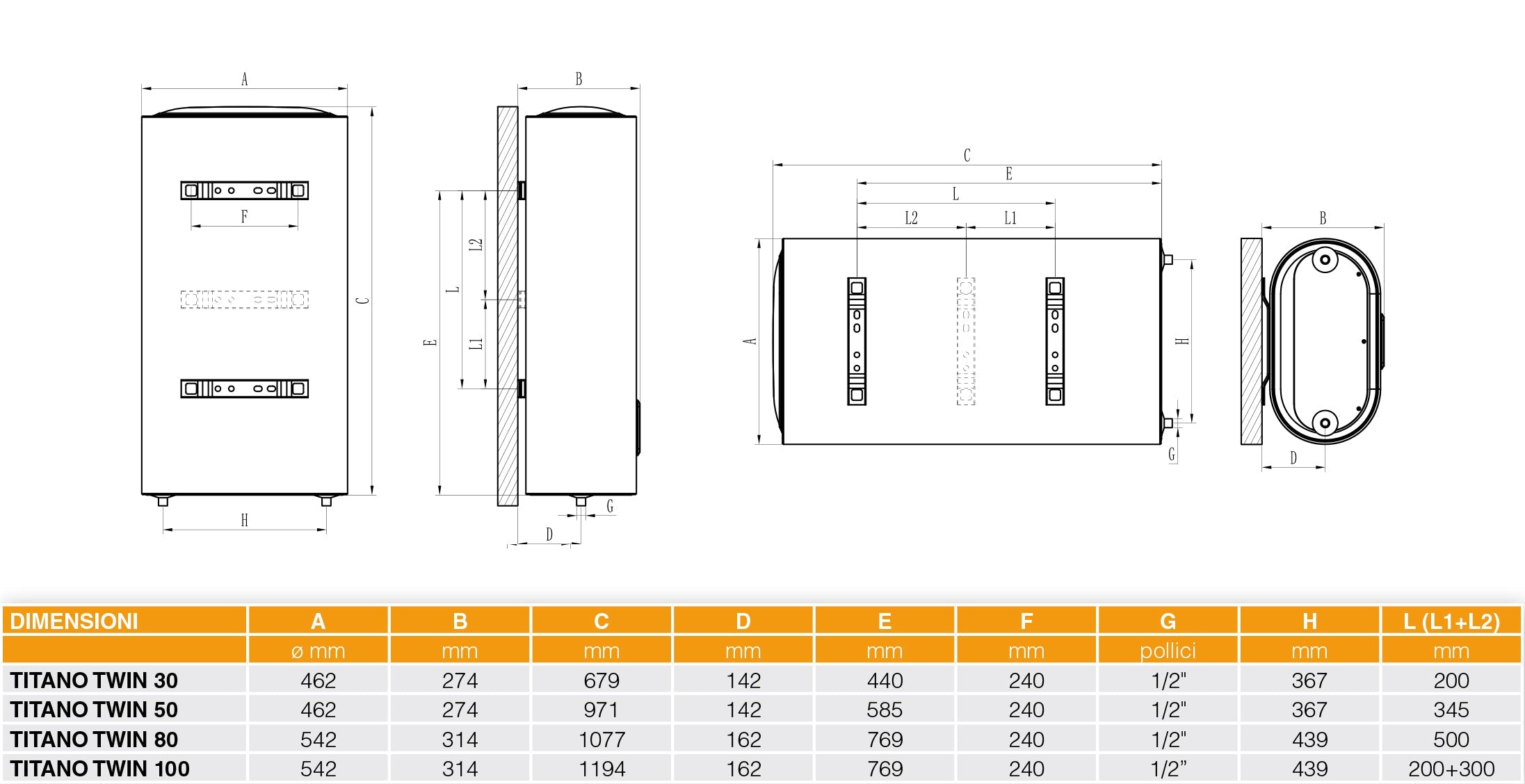 Scaldacqua elettrici slim a doppio serbatoio con capacita da 30 a 100 litri.
