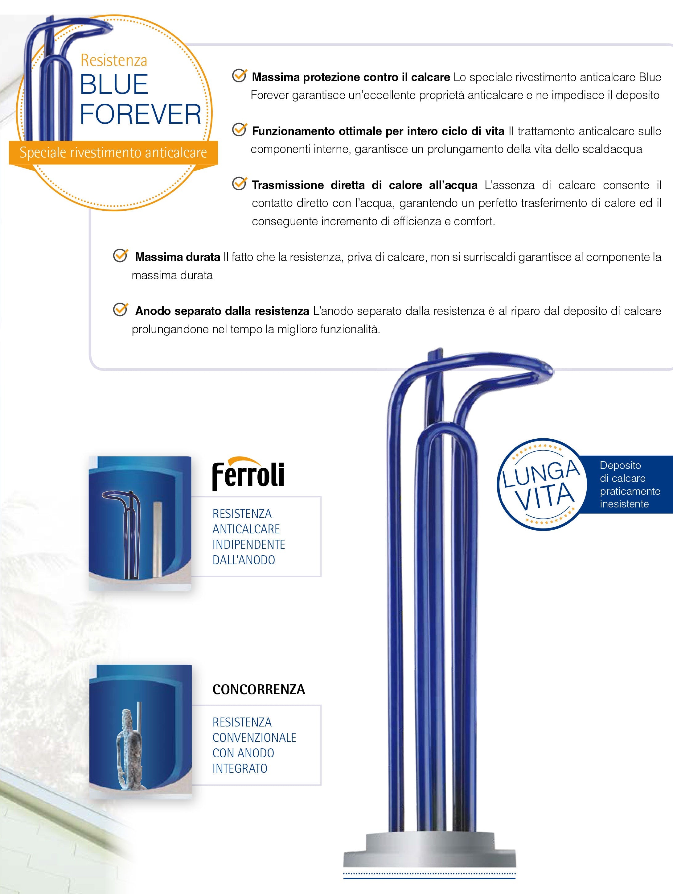 - L’interno dei bollitori e la resistenza elettrica sono trattati con il sistema Blue Forever per una maggior durata nel tempo