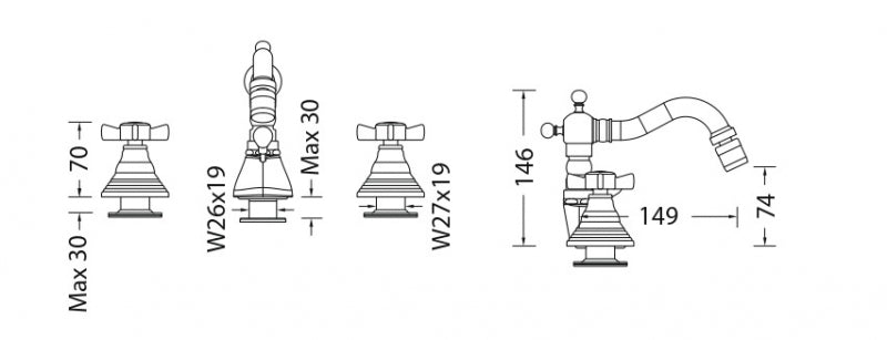 EURORAMA - Batteria bidet 3 fori con canna e saltello - serie: orient - colore: bronzato