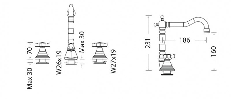 EURORAMA - Batteria Lavabo 3 Fori - Serie: Orientes - Colore: Bronzato Per saperne di più