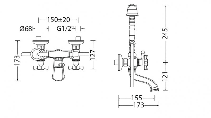 EURORAMA - Gruppo Vasca Miscelatore vasca con deviatore, doccetta e flessibile - Serie: orientes - Colore: Bronzato Per saperne di più
