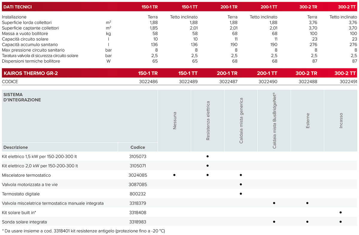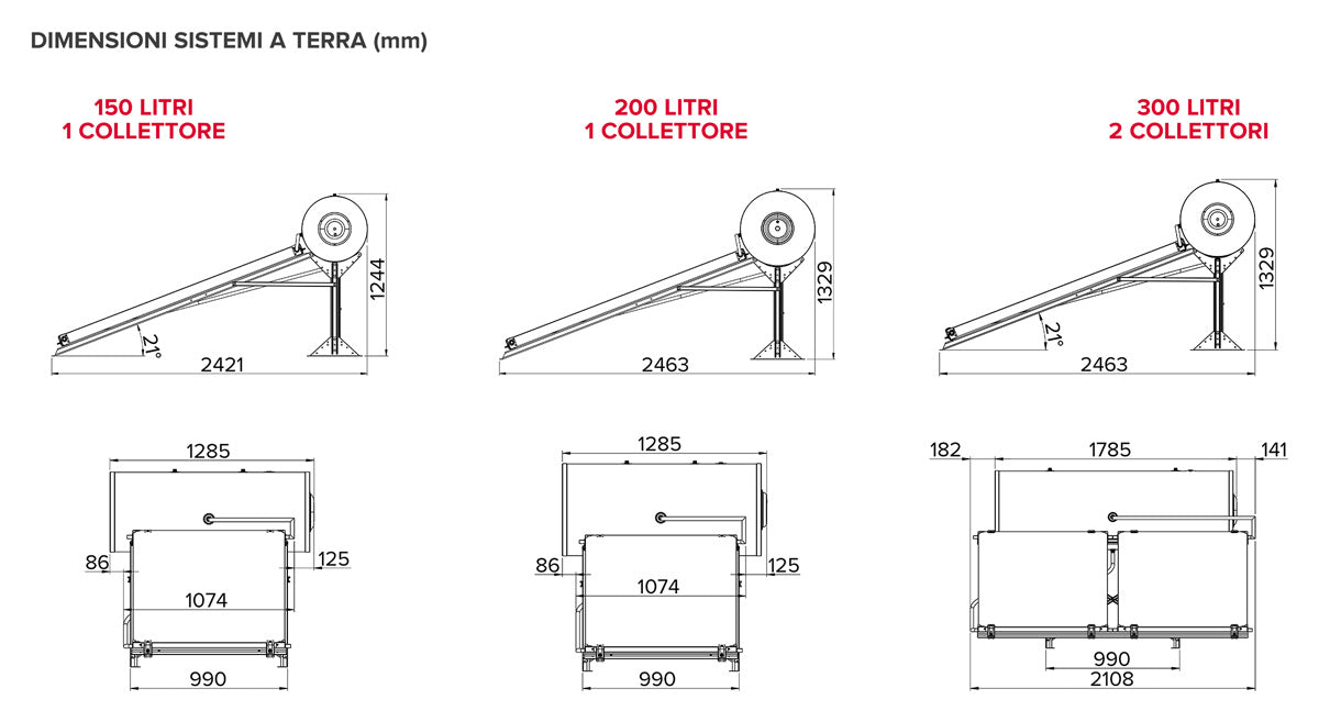 È disponibile nelle versioni per installazione a terra e tetto inclinato nei modelli con accumulo da 150, 200 (con un collettore) e 300 litri (con due collettori).