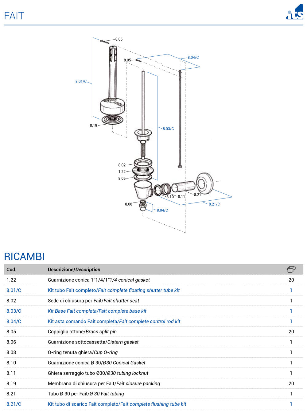 Kit tubo completo per batteria Fait. Contenuto confezione Tubo galleggiante Coppiglia ottone Membrana di chiusura Per saperne di più